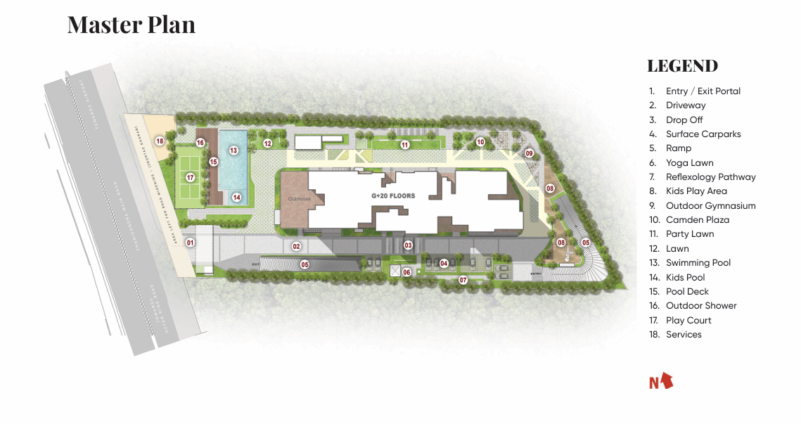Beautiful landscapes around Prestige Camden Gardens with plenty of open spaces and green-covered plazas make it more special and Elite.