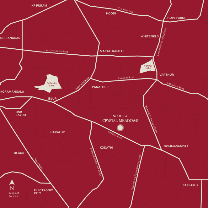 Sobha Crystal Meadows Location has excellent connectivity & it is located in Mullur right off Wipro Gate 1 at the crux of Carmelaram, Varthur Road, Sarjapur Road, and Dommasandra junctions near plenty of existing and upcoming communities & facilities.