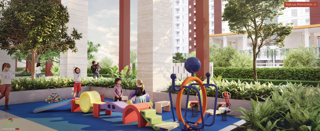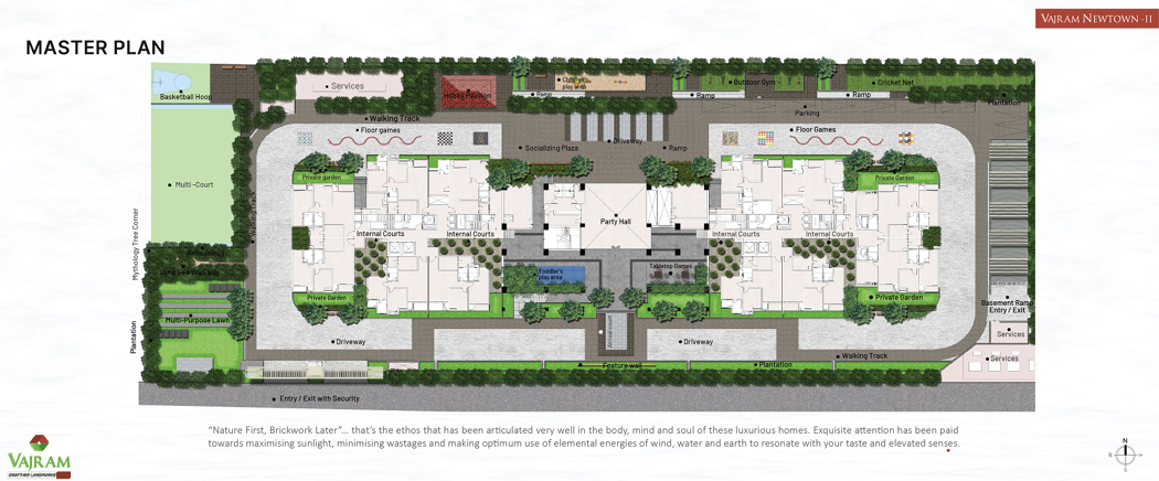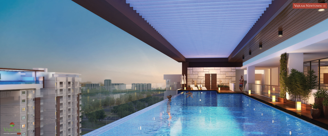 Some of the Amenities at Vajram Newtown 2.0 include a fully equipped clubhouse, landscaped gardens, gymnasium, rooftop swimming pool, recreation rooms, outdoor sports courts, children’s play area, party hall, and meticulously planned with utmost importance to state-of-the-art 24/7 securities.